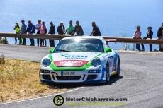 Al término de las dos mangas oficiales, Monzón ha aventajado en 9,4 segundos a quien es su rival por el título de turismos, el tinerfeño Enrique Cruz. Al ser su primera participación en esta subida de 6,7 kilómetros, el piloto de Auto-Laca aprovechó las dos mangas de entrenamientos –los libres y los oficiales– para hacer algunos retoques en su montura. Aprovechando ese rodaje y ante la duda de si en la segunda manga oficial la lluvia o el calor podían dificultar la mejora de los registros, atacó en la primera para poner el listón bien alto. Foto: Alberto Rodríguez.